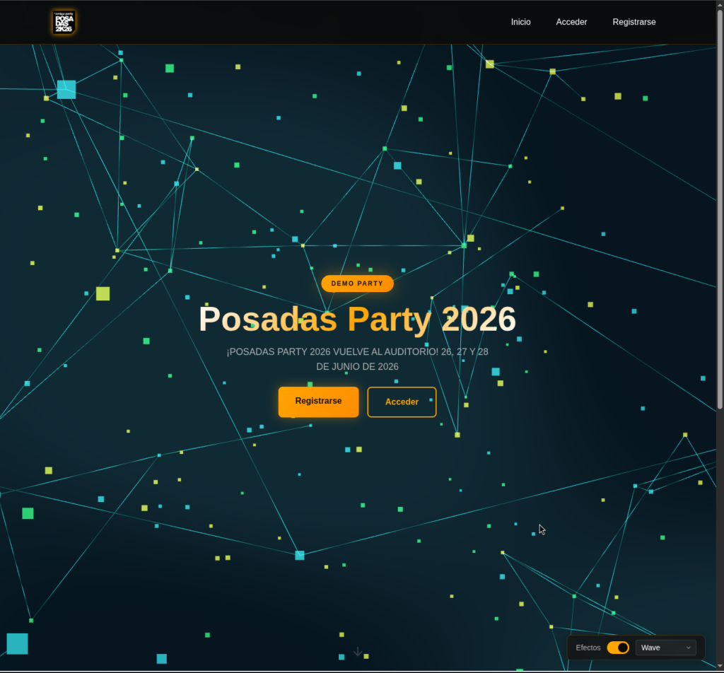 Todo empezó en la Posadas Party de 2022. Necesitábamos un sistema de votaciones y, como suele pasar en estos casos, acabé mirando lo que había disponible. El estándar de facto en la demoscene es wuhu, un sistema de gestión de parties escrito en PHP que lleva años funcionando en medio mundo y que ha sido fundamental para la escena. Un proyecto con mucho mérito y muchas horas de trabajo detrás. Pero yo tenía en la cabeza una visión algo diferente: quería explorar cómo sería un sistema así construido desde cero con las herramientas y los enfoques que usamos hoy en día, y con algunas ideas propias que me rondaban desde hacía tiempo.