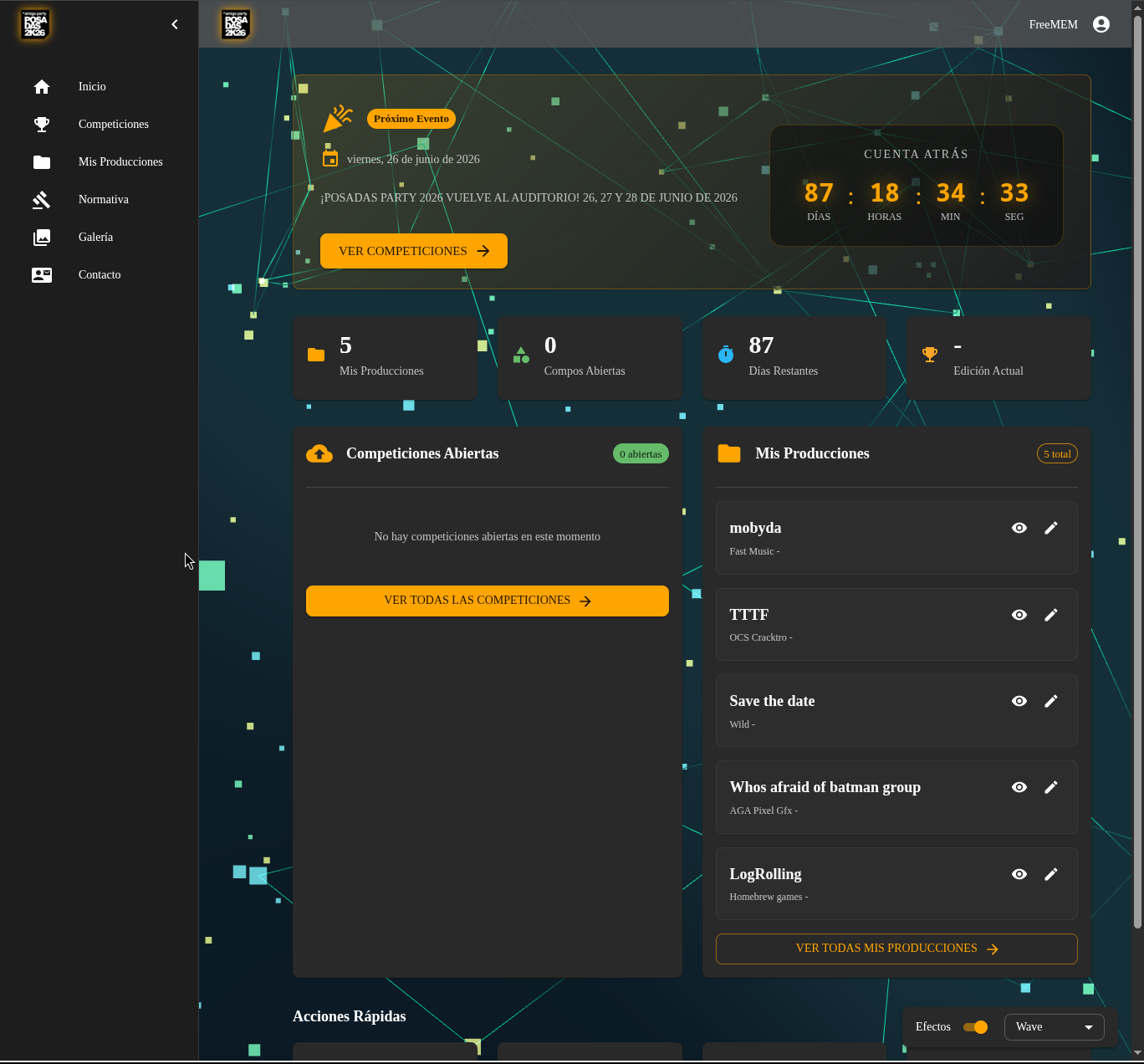 Todo empezó en la Posadas Party de 2022. Necesitábamos un sistema de votaciones y, como suele pasar en estos casos, acabé mirando lo que había disponible. El estándar de facto en la demoscene es wuhu, un sistema de gestión de parties escrito en PHP que lleva años funcionando en medio mundo y que ha sido fundamental para la escena. Un proyecto con mucho mérito y muchas horas de trabajo detrás. Pero yo tenía en la cabeza una visión algo diferente: quería explorar cómo sería un sistema así construido desde cero con las herramientas y los enfoques que usamos hoy en día, y con algunas ideas propias que me rondaban desde hacía tiempo.